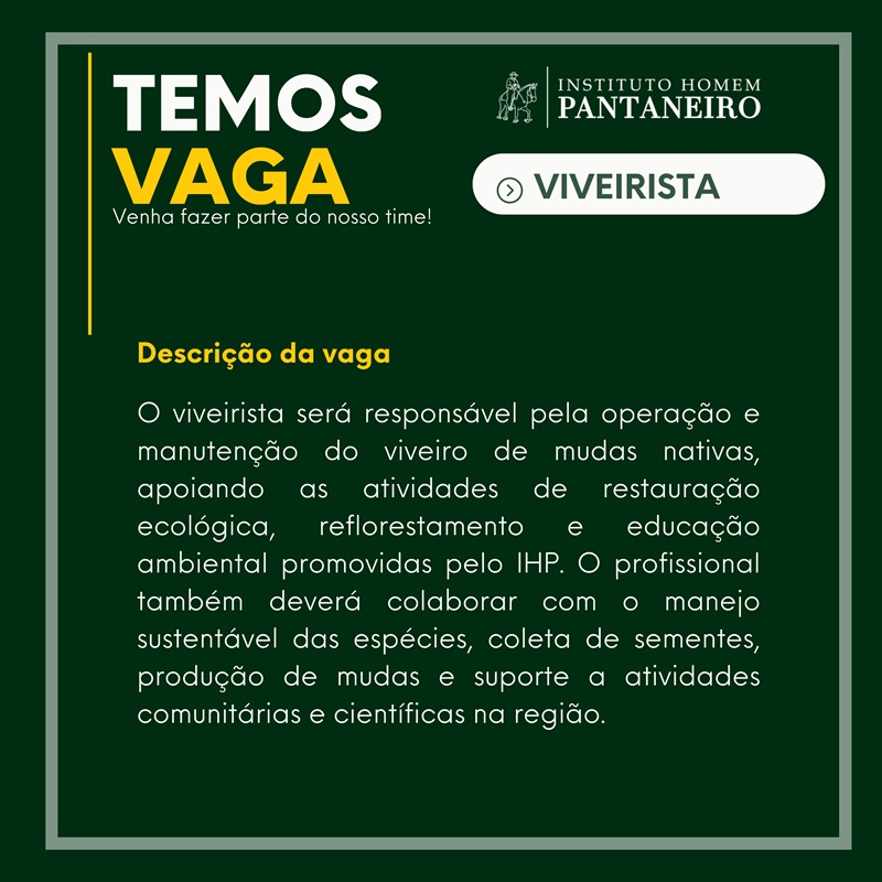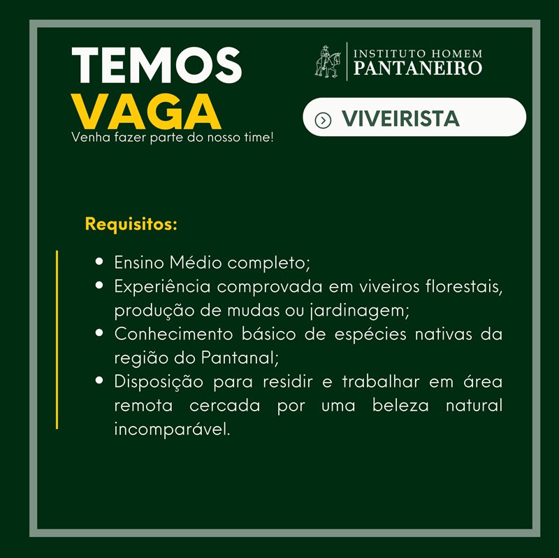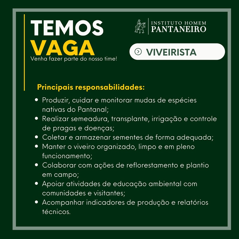📧 Interessados devem enviar currículo para: faleconosco@institutohomempantaneiro.org.br